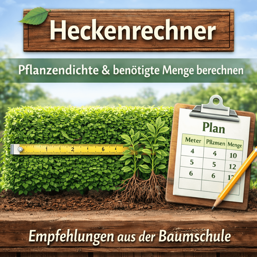 Die richtige Anzahl an Heckenpflanzen ist entscheidend für einen gleichmäßigen, dichten Sichtschutz. Mit unserem Heckenrechner ermitteln Sie in wenigen Sekunden, wie viele Pflanzen Sie für Ihre gewünschte Heckenlänge benötigen.